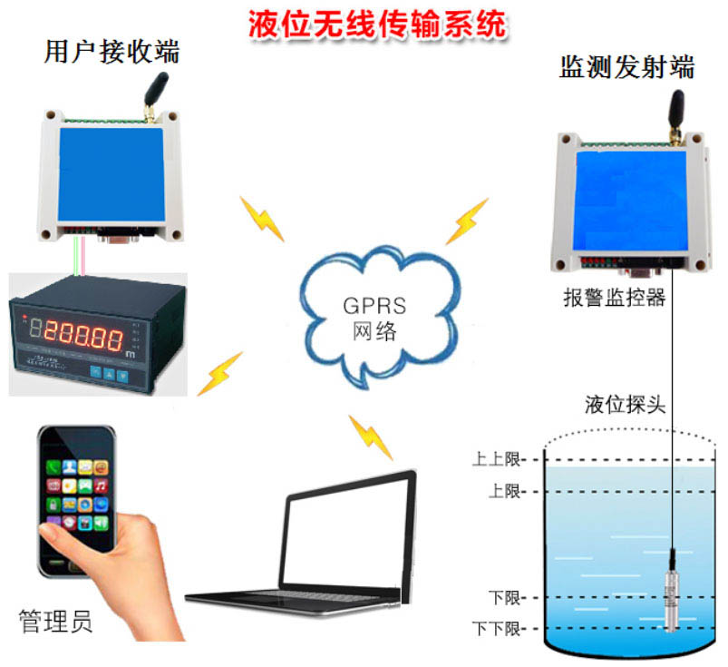 首先,檢測(cè)發(fā)射端通過(guò)液位傳感器采集水位,并通過(guò)GPRS 網(wǎng)絡(luò)將水位數(shù)據(jù)上傳至云平臺(tái),這樣用戶就可以通過(guò)手機(jī)或者電腦查看實(shí)時(shí)水位。