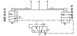 ① 開啟:在二位三通電磁先導(dǎo)閥的手動旋鈕處于與縱軸平行的“一”位置情況下,旋轉(zhuǎn)二位三通電磁先導(dǎo)閥的手動旋鈕,實現(xiàn)開啟手動操作,動作程序如自動開啟程序。