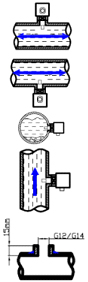 當(dāng)安裝在水平管道的下端時,應(yīng)保證管道底部沒有沉淀物,以免探頭被沉淀物覆蓋而無法與探頭充分接觸。