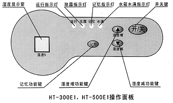 2) 濕度增減鍵:按增減鍵一下,設(shè)定濕度就增加或減少1%,按住增或減鍵1.5秒后,設(shè)定值以每秒5個(gè)點(diǎn)連續(xù)遞增或遞減。